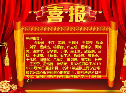 三月份第三周科二、科三考试过关通报