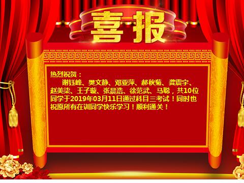 2019年3月13日,驾培中心共有12名学员参加科目三考试,锁顺利通过10人,过关率达83%以上,远远超过全市61%的平均通过率。在诊改会议分析过程中,两名未通过的学员一是在灯光操作上出错,一是在直线行驶上偏向,主要原因既有考试心态自我把控不好问题,也有训练细节不到位问题。